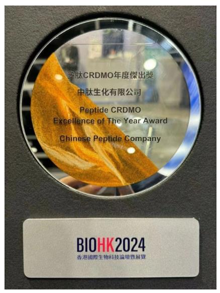 喜報 | 中肽生化榮獲 — Peptide CRDMO Excellence of The Year Award
