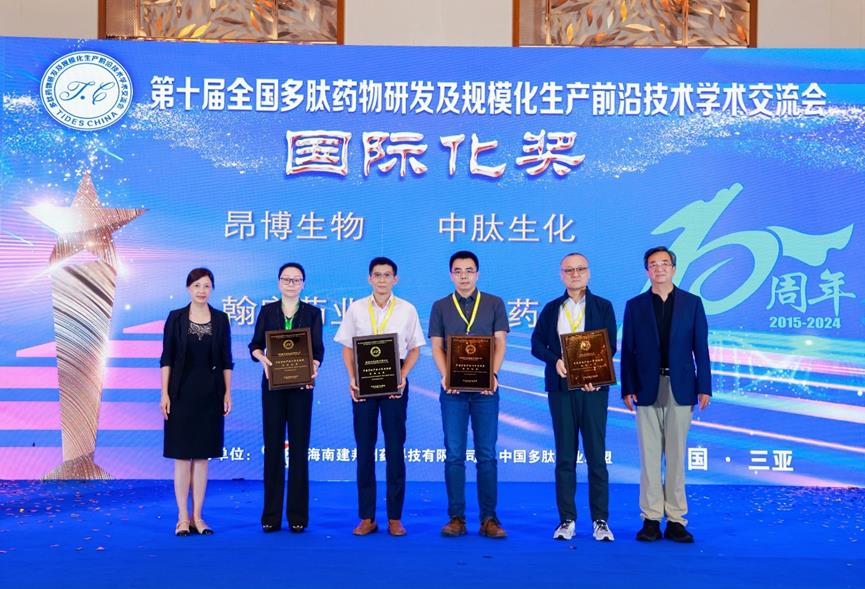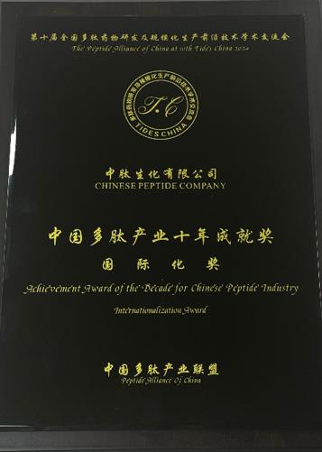 中肽生化有限公司在此次大會(huì)中榮獲“中國(guó)多肽產(chǎn)業(yè)十年成就獎(jiǎng)-國(guó)際化獎(jiǎng)”
