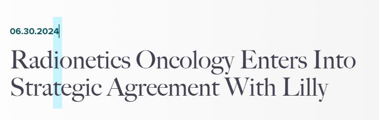 2024年6月30日,禮來與Radionetics達(dá)成合作,引進其小分子GPCR靶向核藥技術(shù)。同時,禮來獲得10億美元收購Radionetics的排他權(quán)。