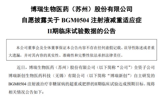 2024年10月14日,博瑞醫(yī)藥(688166.SH)自主研發(fā)的GLP-1(胰高血糖素樣肽1)和GIP(葡萄糖依賴性促胰島素多肽)受體雙重激動劑——BGM0504注射液在非糖尿病的超重或肥胖受試者中開展的II期臨床試驗(CTR20233198)達到主要終點和關鍵次要終點,展現(xiàn)出良好的綜合代謝獲益。