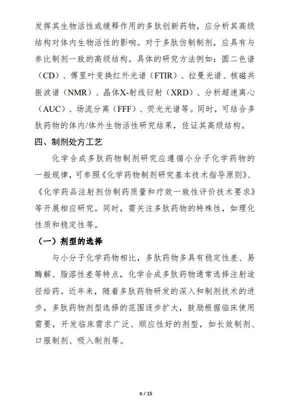 政策法規(guī) | 化學合成多肽藥物藥學研究技術指導原則(試行)(2023)