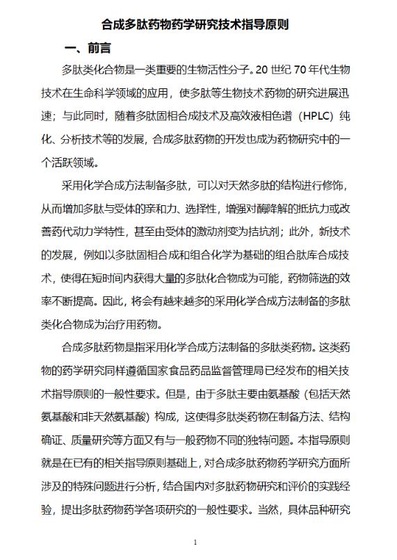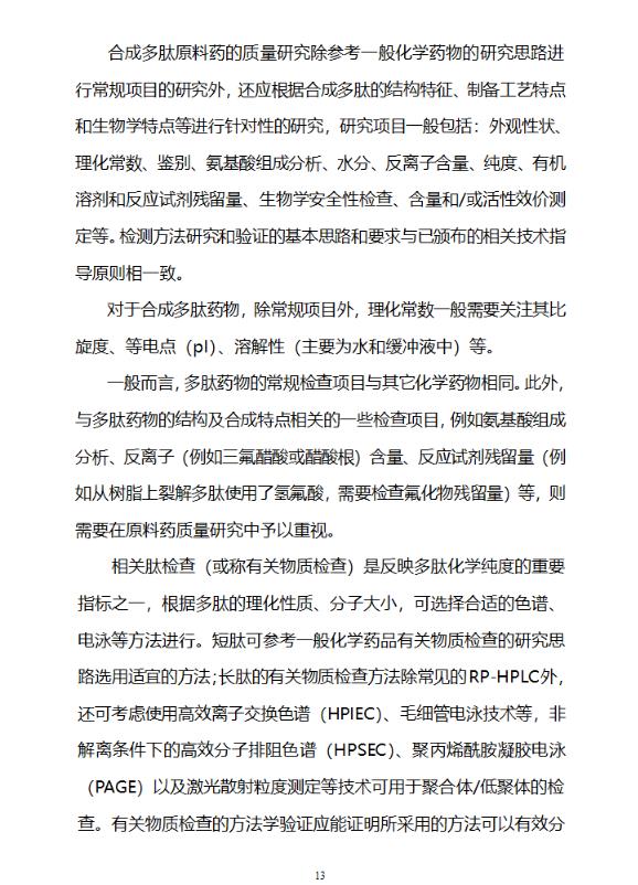 政策法規(guī) | 《合成多肽藥物藥學(xué)研究技術(shù)指導(dǎo)原則》