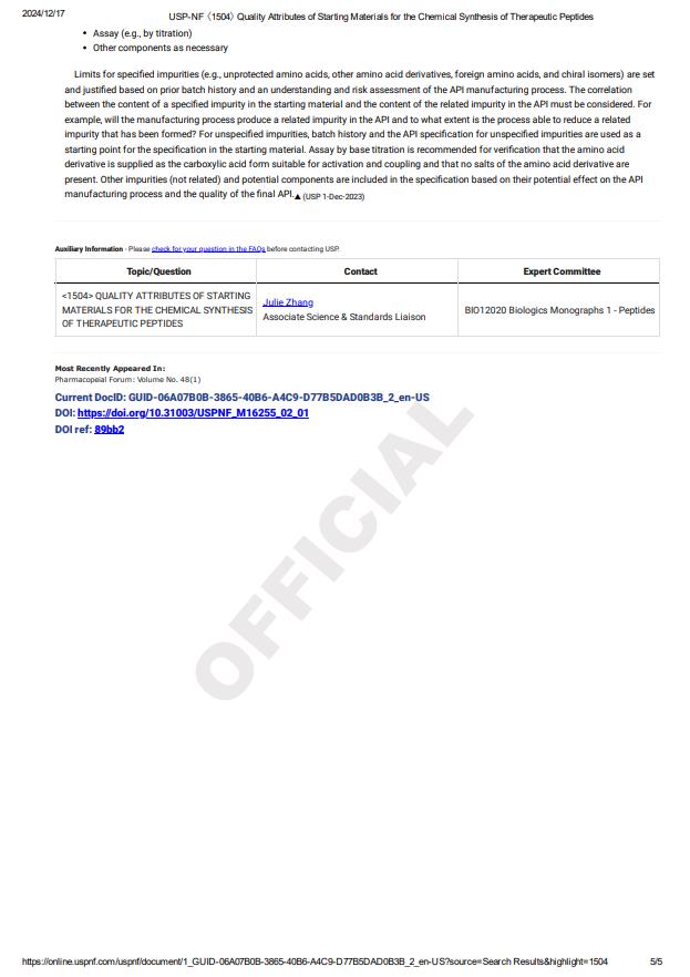 您現(xiàn)在的位置:首頁 - 新聞和活動(dòng) - 行業(yè)動(dòng)態(tài) - 政策法規(guī) | Quality Attributes of Starting Materials for the Chemical Synthesis of Therapeutic Peptide