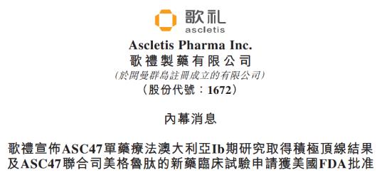 2025年3月12日,歌禮制藥有限公司(香港聯(lián)交所代碼:1672,“歌禮”)宣布ASC47澳大利亞Ib期低密度脂蛋白膽固醇(LDL-C)偏高的健康受試者(第一部分)和肥胖癥患者(第二部分)中的單次皮下注射研究(NCT06427590)取得令人振奮的藥代動(dòng)力學(xué)和減重?cái)?shù)據(jù)。