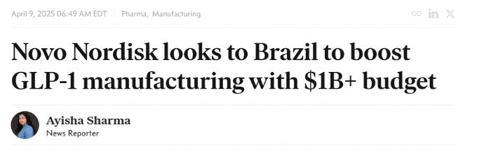 根據(jù)公司的計(jì)劃,預(yù)計(jì)該生產(chǎn)基地將在2028年前完成建設(shè),并且將創(chuàng)造超過500個(gè)高技術(shù)崗位。諾和諾德此次在巴西的投資計(jì)劃堪稱歷史上規(guī)模最大的制藥投資之一。這筆巨額資金將用于引入先進(jìn)的無菌生產(chǎn)工藝,擴(kuò)充倉庫容量,以及新建高質(zhì)量的控制實(shí)驗(yàn)室。
