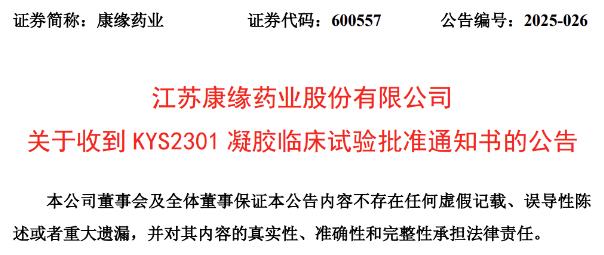 2025年7月3日,康緣藥業(yè)發(fā)布公告,宣布其 1 類化學新藥 KYS2301 凝膠(三種規(guī)格:1%、3%、5%)已獲藥監(jiān)局批準,同意開展臨床,適應癥為特應性皮炎。