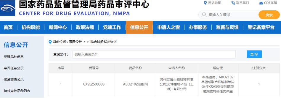 2025年8月4日,據(jù)國家藥品監(jiān)督管理局藥品審評中心(CDE)官網(wǎng)公示,艾博生物自主研發(fā)的同時覆蓋多種KRAS突變的新型mRNA腫瘤疫苗ABO2102新藥臨床試驗(IND)申請(受理號:CXSL2500388)已獲得臨床默示許可。