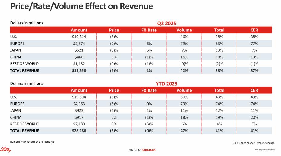 2025年8月7日,禮來發(fā)布2025H1業(yè)績,上半年營收282.862億美元,同比增長41%。